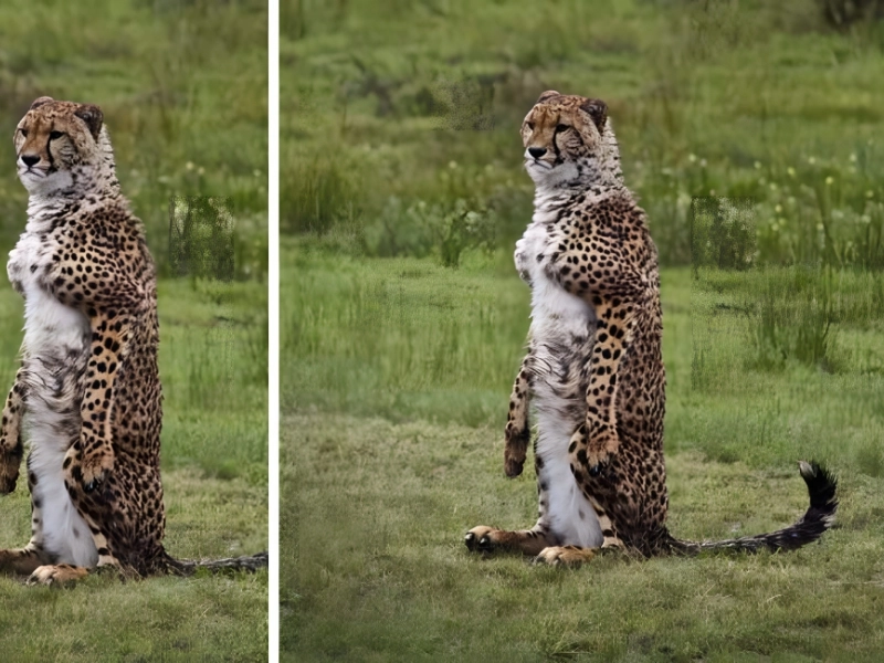 Cette photo captivante d'un guépard dressé a sans doute été prise avec un appareil haut de gamme comme le Sony A1. Avec leurs sens aiguisés les guépards restent en alerte et celui ci semble avoir perçu quelque chose prêt à bondir.