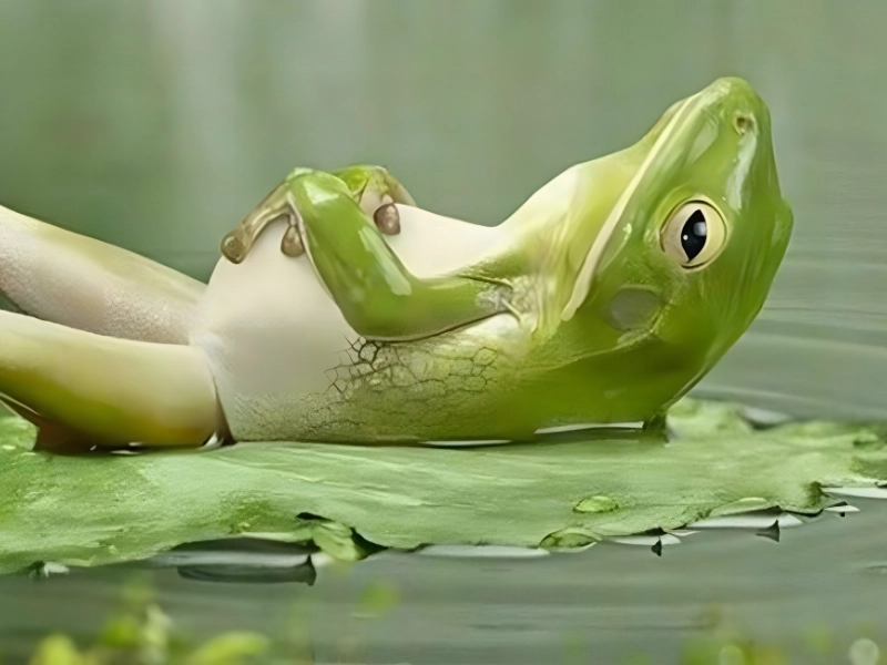 Si vous êtes une grenouille pourquoi ne pas vous détendre sur un nénuphar ? Sans souci elle se repose pensant peut être à son prochain repas. Un appareil macro comme le Nikon Z5 a saisi ce moment vivant.