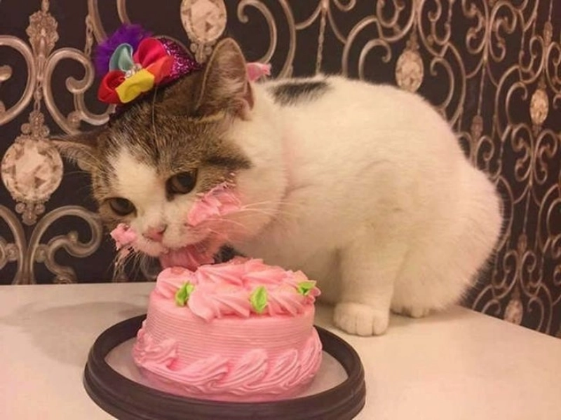 C'était un jour spécial pour Mittens le chat – son anniversaire ! Sa propriétaire Susan cuisina un gâteau avec toutes les choses préférées de Mittens : thon, poulet et vigne argentée. Mittens dévora avidement son gâteau, puis se blottit pour une sieste remplie de rêves de jouets, de poursuites de queue et de endroits ensoleillés. Elle se réveilla rafraîchie et heureuse, prête à profiter de sa journée spéciale.