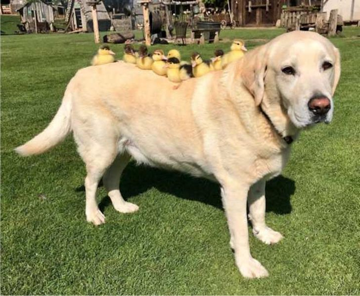 3. Après la disparition de la mère de neuf canetons, ce chien du château les a pris en charge.