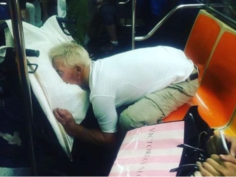 Pour certains, le métro est l'endroit parfait pour rattraper un sommeil bien nécessaire. Ce voyageur inventif a transformé son siège en un lit improvisé, complété par une couverture confortable et une posture détendue. Leur capacité à trouver du confort au milieu du chaos est un témoignage de l'adaptabilité et de l'ingéniosité des citadins.