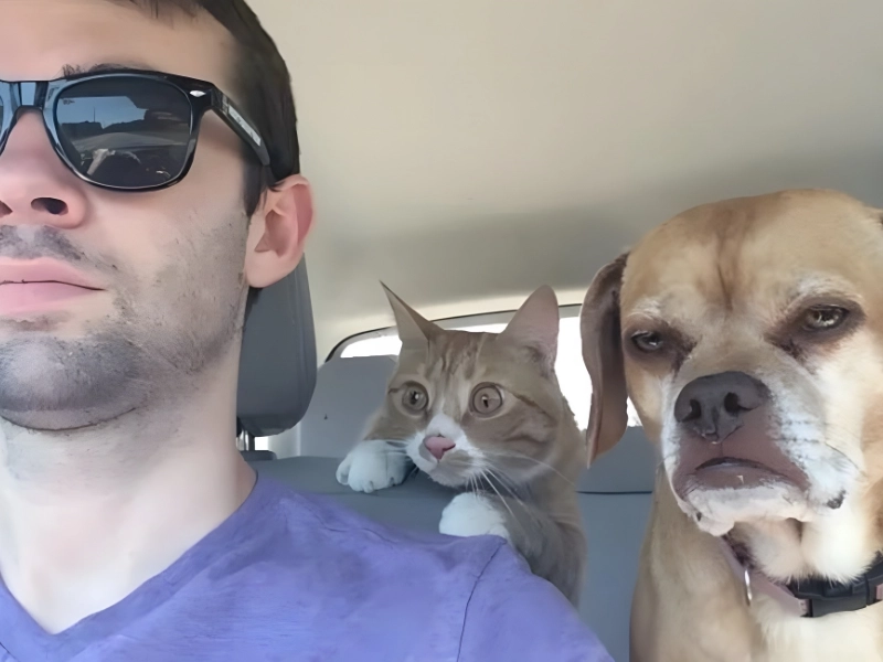 Appareil photo potentiel: Google Pixel Où acheter: Best Buy et magasins Google Prix moyen: 400–1 200 $* La légende dit: "Allons rouler", et cela ressemble à une scène d'un film d'action. Le chien est concentré tandis que le chat semble nerveux. Les trajets en voiture semblent être une affaire sérieuse pour cette petite famille.