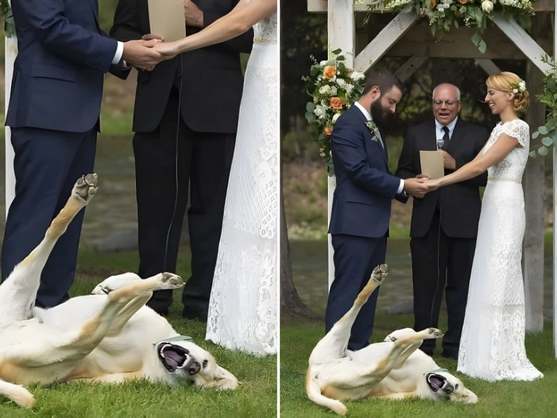 Appareil photo possible: Fujifilm X-S10 Lieu d'achat: Fujifilm, prix moyen Amazon: 1 000 $* La mariée et le marié ont l'air magnifiques, mais quelqu'un a raté le mémo sur l'événement formel. Ce chien semble totalement inconscient, en train de rouler par terre pendant le mariage.