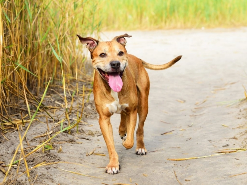 The American Pit Bull Terrier is suited for family life and companionship. They are excitable and love to play. With space to burn energy, they are easy to train. Without it, expect challenges! Like many dogs on this list, they need training and socialization to interact well with strangers and family. With time, they can be very friendly to kids and small dogs.