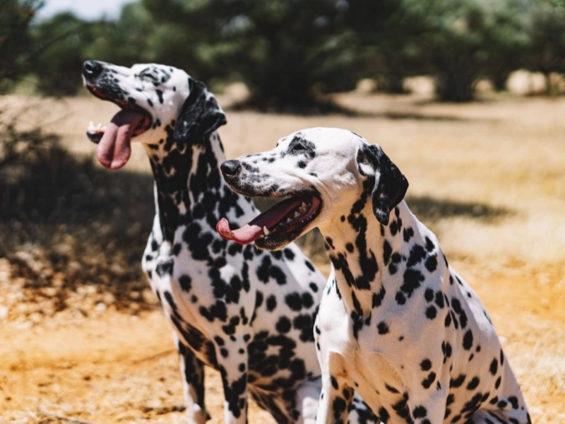 The Dalmatian is a medium-sized breed known for its white coat with black or brown spots. Often seen riding on fire trucks, Dalmatians need thorough training. They can be cheerful and friendly, but without control, they may become dominant. Dalmatians are protective and friendly with their people but may seem intimidating to strangers at first. With proper care, they can be guardians, companions, and playmates all in one.