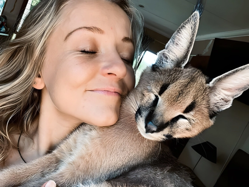This woman seems to have a good relationship going with her cat even though caracals are wild cats who typically make poor pet. Both of them seem so at ease with one another, and those contented cuddles seem so soft and warm! But may we all pause to value the ears of this guy? Super cute and like satellite dishes, a caracal's ears take in sounds within the vicinity.