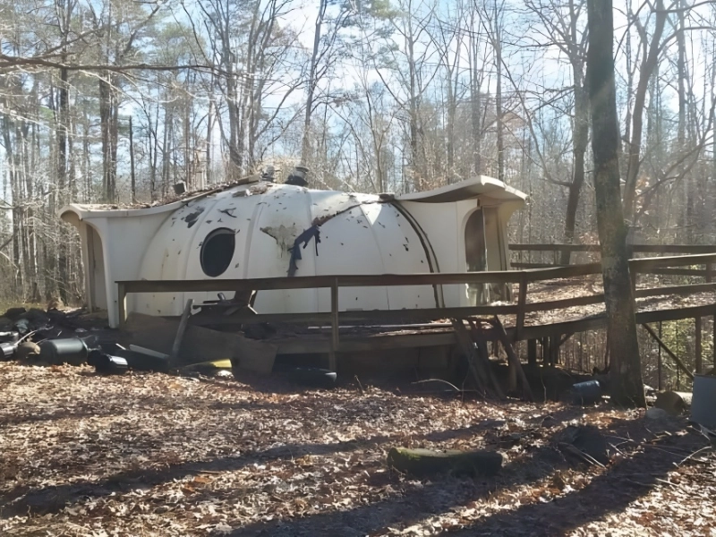 チャペルヒルのこのドームハウスも、その一例です。かつては未来的な夢を象徴する存在でしたが、現在では放棄され、自然に飲み込まれるように荒廃しています。年月が経つにつれて、建物は風雨にさらされ、その姿は次第に朽ち果てていきました。