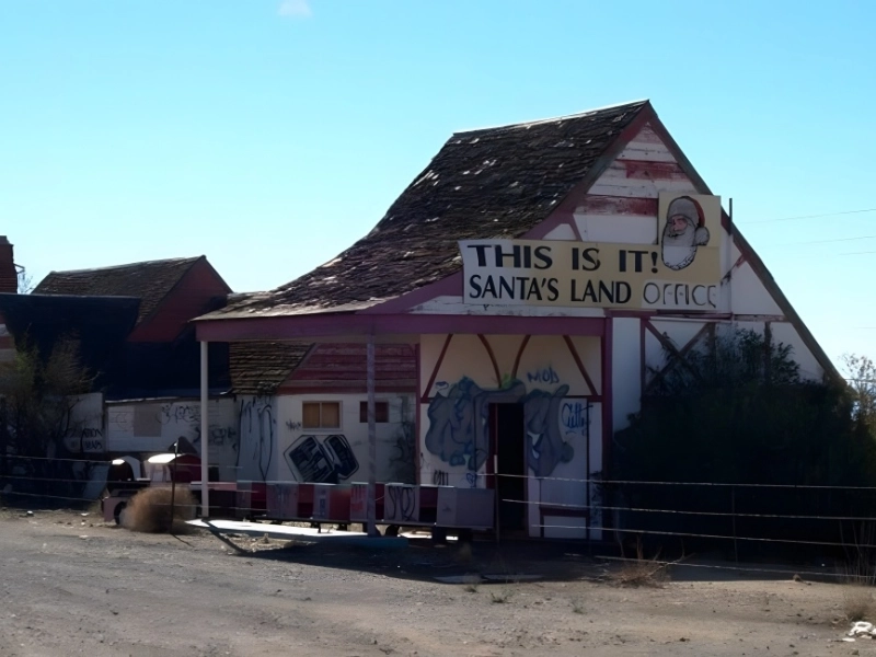 砂漠の北極に設立されたサンタクロースは、クリスマスをテーマにした乗り物やその他の建物が特徴的な町でした。このユニークな町は、一時期映画スターさえも引き付けるほどの人気観光地となりました。しかし、その地域の土地を購入する人が少なく、サンタクロースは次第に経済的に苦戦し始めました。