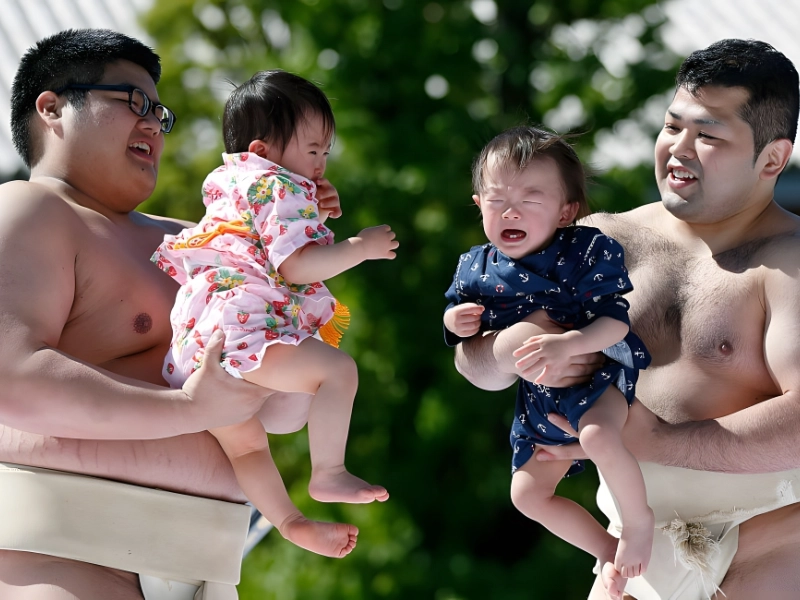 泣き相撲は、4世紀にわたって日本の文化において重要な役割を果たしてきました。毎年5月5日は春の真っ盛りを祝う日として選ばれ、この日に泣き相撲が行われます。この行事には2人の力士が必要で、そのうちの1人は赤ちゃんを抱いています。