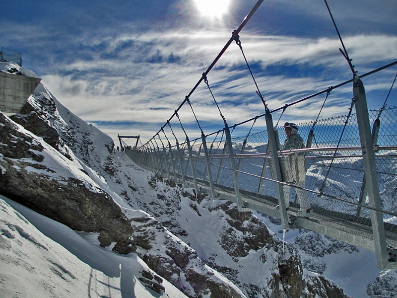 À la hauteur vertigineuse de 3 048 mètres au-dessus du niveau de la mer, la passerelle de Titlis est le pont suspendu le plus haut d'Europe. Large de seulement 90 centimètres, le pont s'accroche à la montagne enneigée, offrant des vues à la fois époustouflantes et terrifiantes. Chaque rafale de vent et chaque craquement sous vos pieds vous rappellent que vous êtes suspendu au-dessus d'un abîme glacé, faisant de cela un vrai test même pour les aventuriers les plus courageux.
