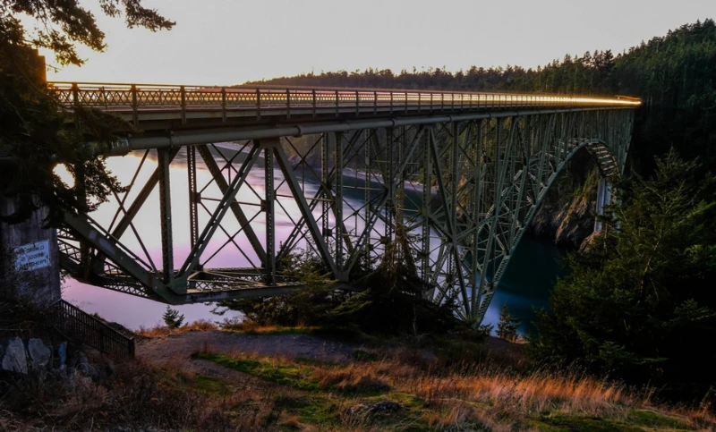 Enveloppé de brume et de mystère, le pont de Deception Pass relie l'île de Whidbey et l'île de Fidalgo dans l'État de Washington. Souvent enveloppé de brouillard, le pont peut rendre presque impossible de voir plus de quelques mètres devant soi. Les eaux tourbillonnantes en contrebas et la chute abrupte ajoutent au sentiment de suspense, faisant de chaque traversée une aventure dans l'inconnu.