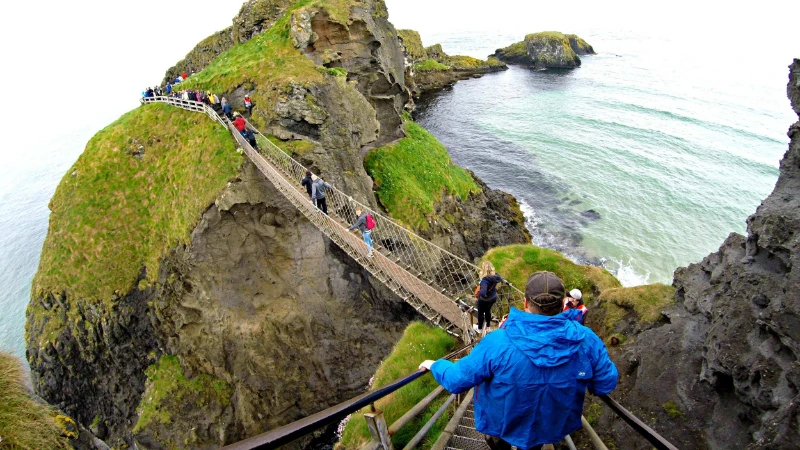 Construit à l'origine par des pêcheurs de saumon il y a plus de 350 années pour faciliter leur travail quotidien, le pont est maintenant devenu une attraction touristique célèbre et extrêmement populaire. Le léger balancement naturel dans le vent ajoute une dimension supplémentaire de sensations fortes à l'expérience, tandis que les grottes situées en dessous abritent une vie marine diversifiée et fascinante. Visiter lors d'une journée calme et ensoleillée vous permet de profiter pleinement et d'apprécier le paysage côtier absolument époustouflant.