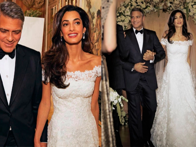 Amal Alamuddin, maintenant Amal Clooney, a porté une robe Oscar de la Renta évaluée à près de 400 000 dollars. La dentelle époustouflante de la robe et sa silhouette élégante incarnaient la sophistication, établissant une nouvelle norme pour la mode nuptiale.