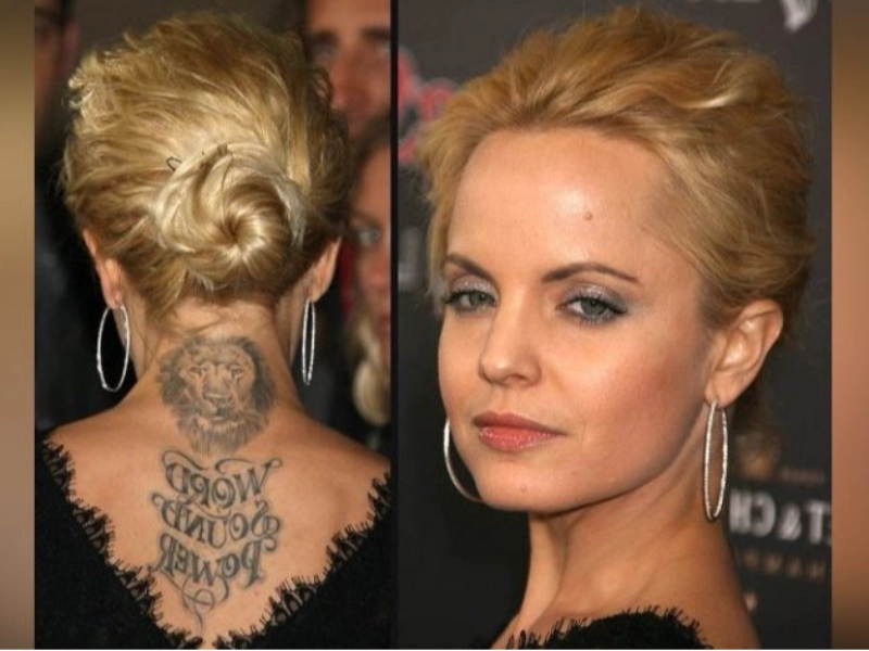 Mena Suvari arbore un tatouage sur son dos comportant des mots puissants sous un symbole de force. Ce tatouage représente la force intérieure, le courage face aux défis et l'importance des mots dans la construction de notre réalité personnelle et collective.