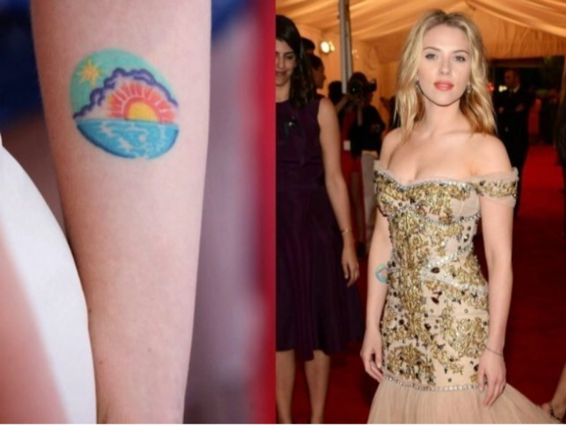 Scarlett Johansson : l'art corporel artistique et coloré Scarlett Johansson est reconnue pour ses tatouages situés sur ses poignets, ses chevilles, ses côtes et ses avant-bras, créant une collection diversifiée et impressionnante. Un tatouage particulièrement remarquable est une aurore colorée et vibrante sur sa main gauche, symbolisant l'espoir renouvelé et les nouveaux commencements prometteurs. Ce design apporte une énergie positive et lumineuse à sa collection et reflète son esprit créatif débordant.