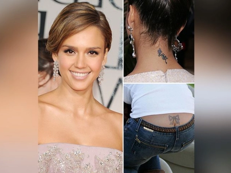 Jessica Alba : l'art avec une signification personnelle profonde Jessica Alba est largement reconnue pour ses tatouages élégants, chacun portant sa propre histoire unique et touchante. Elle arbore un tatouage représentant un nœud délicat sur le bas de son dos, ajoutant une touche d'élégance raffinée à son apparence générale. Elle possède également des tatouages sur son poignet et son cou, chacun revêtant une signification spéciale et personnelle importante.