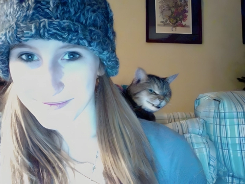 Personne ne l'a vue depuis; cela pourrait être la dernière photo de la fille. Le sourire malicieux du chat en dit long. Peut-être que le chat est agacé que sa propriétaire s'intéresse plus aux selfies qu'à lui donner de l'attention. Le chat semble prêt à se venger. Ou peut-être qu'elle est juste contrariée que la fille ait photobombé sa photo. C'est comme cela que les chats regardent quand nous les ignorons.