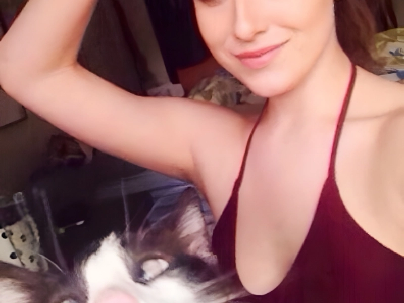 Le sabotage de selfie est réel. Une femme pose, et son chat vole la scène avec des yeux croisés. Les chats adorent faire partie des selfies. Peut-être que le minou a été submergé par une forte odeur ou qu'il ne supportait pas d'avoir l'aisselle de sa propriétaire si proche. La prochaine fois, un peu de déodorant pourrait aider.