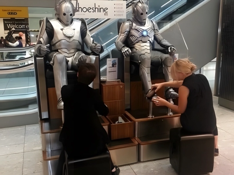 Même si cela ressemble à une blague, ce n'en était pas une. Combien de fois avez-vous vu ces stands de cirage de chaussures improvisés dans les aéroports en vous demandant qui avait le temps de s'asseoir là pour ça, ou mieux encore, qui paierait pour ce service ? Il s'avère que les personnages ayant besoin d'un cirage étaient en ville pour la Comic-Con, et pour qu'ils soient à leur avantage, leurs costumes devaient être impeccables et brillants.