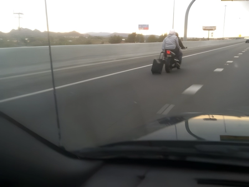 Lorsque votre taxi annule votre course pour l'aéroport, c'est la panique totale car personne ne veut rater son vol. Ne parvenant pas à trouver un Uber, ces hommes ont imaginé un autre plan : transporter le passager et ses bagages à l'aéroport à moto. Bien que l'idée soit ingénieuse en théorie, elle s'est avérée désastreuse en pratique. Ce bagage n'était pas près d'arriver à destination, et ils ont très probablement dû faire signe à un taxi de secours sur l'autoroute.