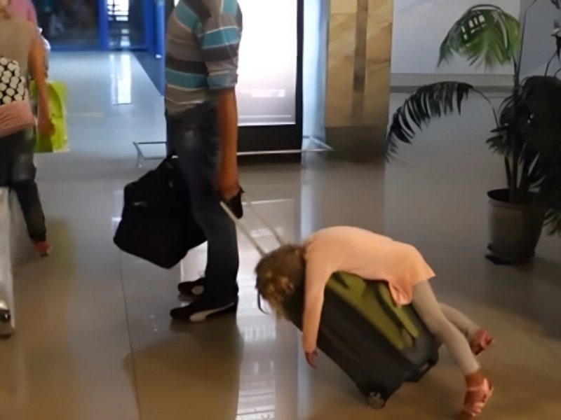 Cette jeune fille est une métaphore de ce que tout le monde ressent dans un aéroport. C'est un processus épuisant qui oblige souvent à rester debout des heures d'affilée, que ce soit pour la sécurité, le contrôle des passeports ou la récupération des bagages. De plus, les retards intensifient le désagrément d'être coincé à l'aéroport. Nous pensons que cette fille a accompli quelque chose de vraiment brillant. Non seulement elle a pu faire une sieste, mais son père a également pu la porter jusqu'à l'avion pendant qu'elle dormait.
