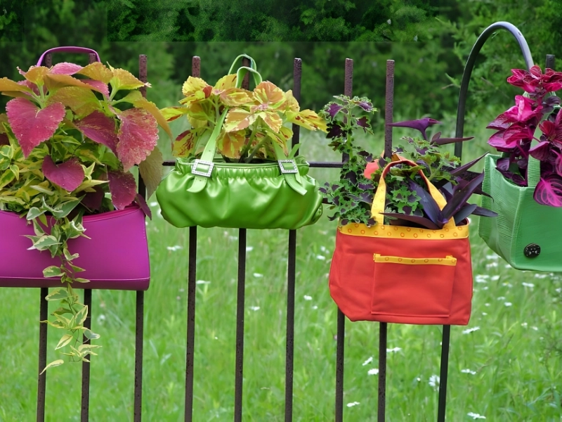 Vous pouvez transformer un vieux sac à main en une jardinière élégante et unique en le doublant d'un matériau imperméable. Même si vous pourriez vouloir le peindre pour vous assurer qu'il résiste bien aux intempéries, cette solution astucieuse sera toujours moins chère que d'acheter un nouvel article chez Home Depot.