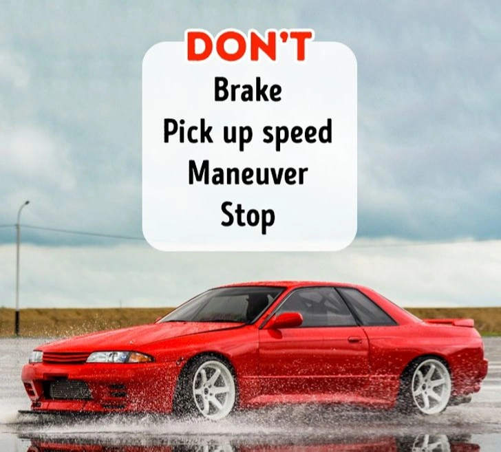 À l'approche d'une flaque, même petite, ralentissez et traversez-la de manière régulière, sans changer brusquement de direction ou de vitesse. Une conduite trop rapide pourrait projeter de l'eau dans le système d'allumage et caler le moteur. De plus, vous risquez l'aquaplaning, ce phénomène où le véhicule perd toute adhérence et devient incontrôlable.