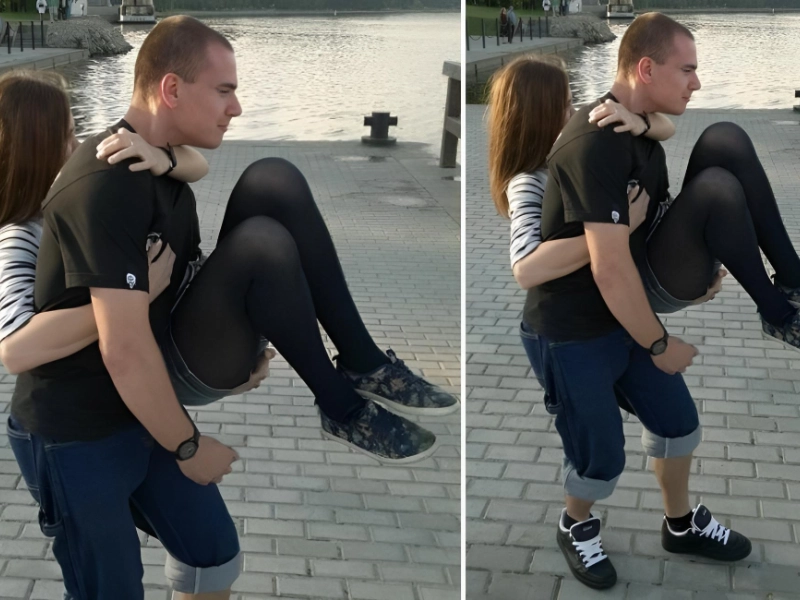 Appareil photo potentiel : iPhone 12 Où l'acheter : Apple Prix moyen : 560–780 $* Cette photo, probablement prise avec un simple appareil photo de téléphone portable ancien, est un autre exemple d'illusion d'optique. Cette photo astucieuse peut d'abord vous faire voir une variété de scènes improbables, comme une femme portant un homme vêtu de collants et de shorts courts.
