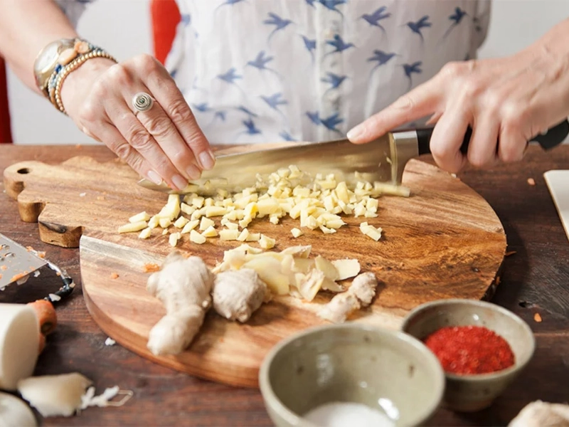 Commencez par expérimenter avec du gingembre frais dans vos recettes. Râpez-le ou hachez-le finement, puis ajoutez-le aux soupes, aux sautés et aux marinades. Son goût épicé et réchauffant se marie particulièrement bien avec le poisson, les viandes et les légumes. Préparer une pâte gingembre-ail vous permettra de créer une marinade pour les grillades ou une base pour des currys. En plus d'être délicieuse, cette combinaison apporte à vos plats un puissant boost antioxydant et anti-inflammatoire.